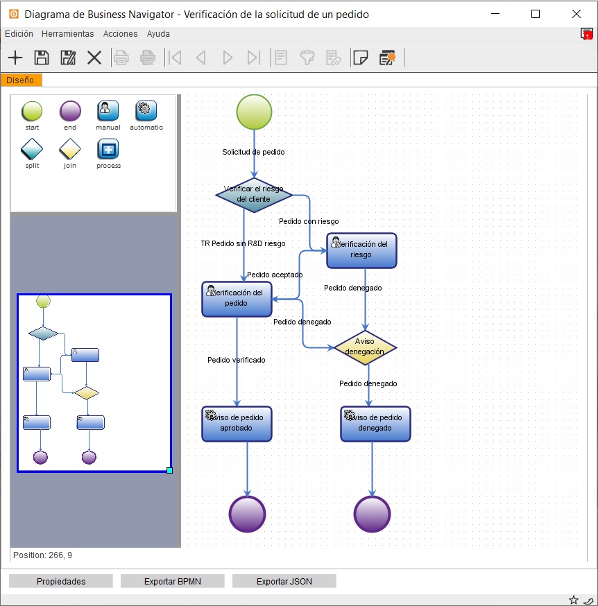 Los flujos de trabajo se crean mediante el Diseñador de diagramas, el cual permite crear los diagramas y modelar los procesos de forma gráfica. Para mantener los diagramas, desde UI y la vista Principal, en Sistema y Diseño, acceda a Business Navigator, Diagramas.