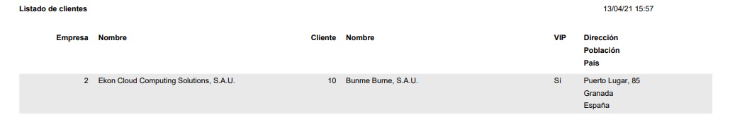 De nuevo pulsamos Imprimir y desde el Diálogo de selección de listados marcamos el nuevo listado Listado de clientes y con Imprimir todos accedemos al Diálogo de impresión de listados.